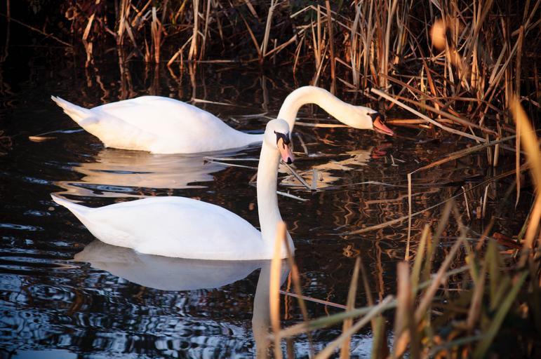 Keywords: swans swan bird water animals nature riva birds couple white lake