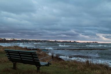 Keywords: sweden scandinavia bench sea shore weather swedish cold coast scenery sky