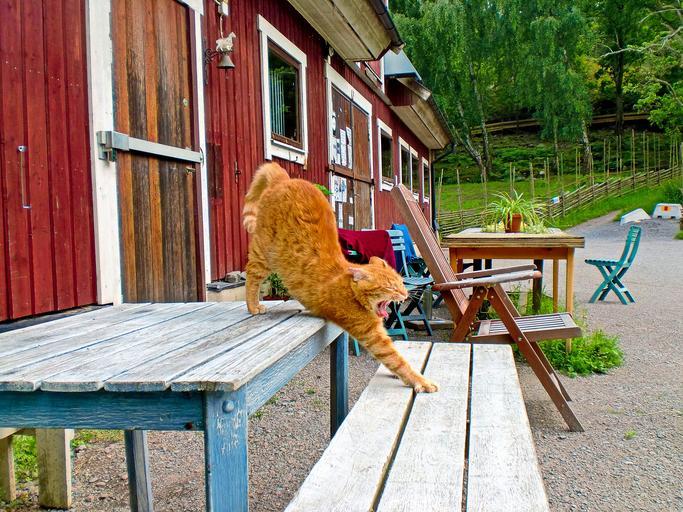 Keywords: sweden stockholm summer cat animals trip holiday calm stretch stretch the cat animals house bench