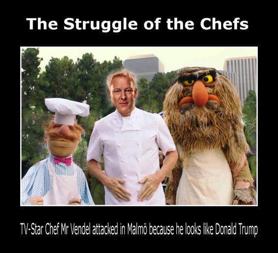 | Keywords: mr. vendel mrvendel swedish swedish tv chef swedishtvchef attacked beaten chef restaurant owner restaurantowner malmö malmo trump lookalike Mr. Vendel looks like Trump, therefore they beat him up! Swedish TV chef brutally beaten by "Muslim men" because he "looked like Mr. Trump" Publicerad 12 november 2016 kl 19.23 INRIKES. Anders Vendel, a famous chef, restaurant owner and TV star from Malmö, Sweden, was savagely beaten by three "Muslim" men because they thought he looked like "Mr. Trump", Sydsvenskan reports. In a Facebook post Mr. Vendel – who is a well-known anti-Racist figure and a star of the TV show "The Struggle of the Chefs"– described the brutal assault that took place early Saturday morning in a late-night fast food restaurant in Malmö. www.friatider.se/swedish-tv-star-chef-brutally-beaten-mus... Mr. Vendel looks like Trump, therefore they beat him up! Swedish TV chef brutally beaten by "Muslim men" because he "looked like Mr. Trump" Publicerad 12 november 2016 kl 19.23 INRIKES. Anders Vendel, a famous chef, restaurant owner and TV star from Malmö, Sweden, was savagely beaten by three "Muslim" men because they thought he looked like "Mr. Trump", Sydsvenskan reports. In a Facebook post Mr. Vendel – who is a well-known anti-Racist figure and a star of the TV show "The Struggle of the Chefs"– described the brutal assault that took place early Saturday morning in a late-night fast food restaurant in Malmö. www.friatider.se/swedish-tv-star-chef-brutally-beaten-mus... |
