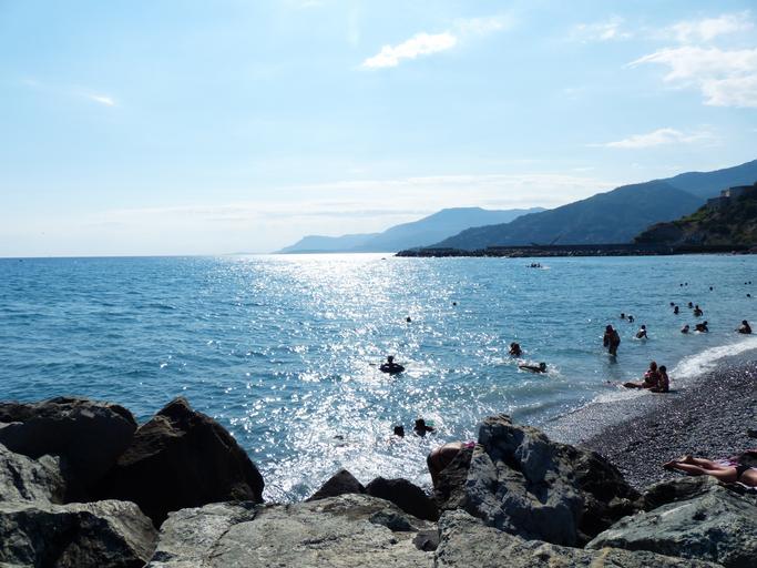 Keywords: swim holiday sea beach bathers fun bathing mediterranean water liguria ligurian coast ventimiglia rock stone beach