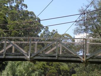 | Keywords: Swing Bridge Suspension Bridge 2009 Old 5.JPG en Another photo I took of a small suspension bridge in Yarra Ranges Australia You can see the types of cables used in the bridge in this photo own Matthew Paul Argall Suspension footbridges in Australia Footbridges in Victoria Australia |