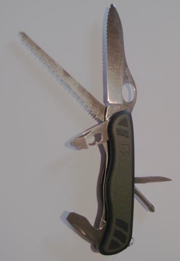 | Keywords: Swiss Army Knife 2009.png Soldatenmesser 08 Militärsackmesser - Victorinox Soldier Knife 08 Mili-tary Pocketknife as issued from 2008 to the Swiss Military The 09 on the blade indicates this knife was produced in the year 2009 <br> The Soldier Knife 08 features an 111 mm 4 4 in long ergonomic handle with two-component polymer grip shells and a double liner locking system one-hand 86 mm 3 3 in long partly serrated locking drop point blade wood saw can opener with small 3 mm screw-driver locking bottle opener with large 7 mm screwdriver and wire stripper/bender reamer Phillips PH2 screwdriver and key ring The overall length opened is 197 mm 7 8 in and it weighs 126 g 4 44 oz Transferred from http //en wikipedia org en wikipedia<br/> Original text I created this work entirely by myself 2009-07-15 Lorenzo Repenning Original uploader was Dragentsheets at http //en wikipedia org en wikipedia Later version s were uploaded by Francis Flinch at http //en wikipedia org en wikipedia Released into the public domain by the author en wikipedia Dragentsheets original upload log page en wikipedia Swiss_Army_Knife_2009 png 2009-07-15 15 24 Francis Flinch 1968×2844× 4611095 bytes <nowiki>touched up image</nowiki> 2009-07-15 15 19 Francis Flinch 1968×2844× 5198174 bytes <nowiki>touched up image</nowiki> 2009-06-21 13 37 Dragentsheets 1968×2844× 5879162 bytes <nowiki> The official 2009 Swiss Army Knife I created this work entirely by myself Lorenzo Repenning </nowiki> Victorinox Swiss Army knives with olive plastic scales Knives issued by the Swiss military |