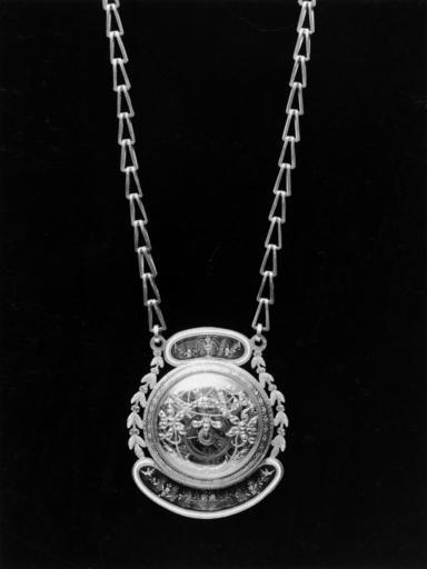 | Keywords: Swiss - Watch with Chain and Pendant Key - Walters 5846.jpg On the back of the watch is a pierced plaque with diamonds set in the design of a basket and floral spray The front of the case is engraved and enameled with scenes of doves and animals in a landscape The winding key is painted with a fancy portrait of a young girl ca 1820 gold enamel glass diamond and silver case and key watercolor on ivory portrait cm 4 6 accession number 58 46 6287 Henry Story London probably the importer- piece is inscribed Story London Henry Walters Baltimore date and mode of acquisition unknown Walters Art Museum Henry Walters Acquired by Henry Walters Inscription P T M Objects of Vertu Precious Works of the Eighteenth Century The Walters Art Gallery Baltimore 1984 place of origin Switzerland Walters Art Museum license Jewellery of Switzerland Media contributed by the Walters Art Museum needs category review Timepieces in the Walters Art Museum Fob watches |