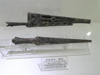 Keywords: Sword, knife, and sheath (bronze, Western Han) - Yunnan Provincial Museum - DSC02276.JPG Exhibit in the Yunnan Provincial Museum Kunming Yunnan China I took this photograph 2011-08-09 01 11 18 Daderot Public domain Antiquities in the Yunnan Provincial Museum |