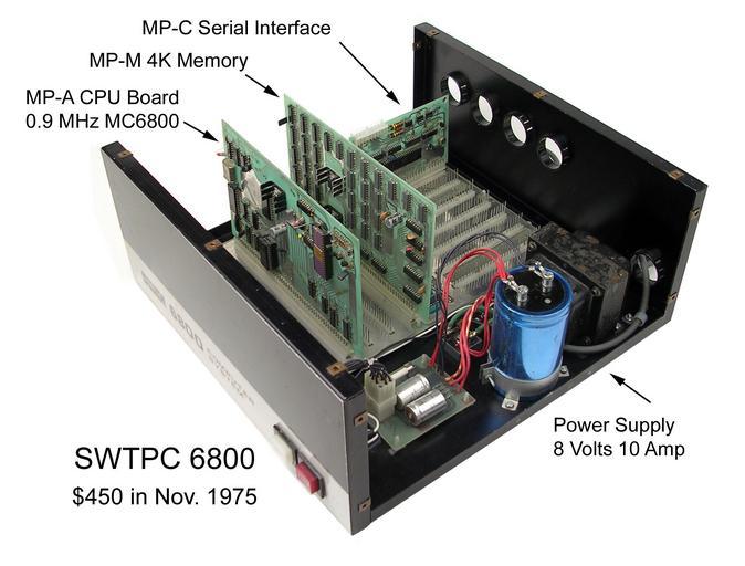 | Keywords: SWTPC6800 open.jpg SWTPC 6800 Computer System introduced by Southwest Technical Products Corp of San Antonio Texas in November 1975 and sold for 450 This computer used the Motorola 6800 microprocessor and peripherals The CPU board had 128 bytes of RAM and 1024 bytes of ROM The minimal system also had a 4096 byte RAM board and a serial interface The computer was used with the SWTPC CT-1024 Computer Terminal The computer system could be expanded to 32K of RAM and 8 interface boards A floppy disk system was introduced in June 1977 The SWTPC 6800 was upgraded in 1978 and discontinued in 1980 Photo by Michael Holley September 2005 Taken with a Nikon E3200 camera under tungsten lighting Own 2006-09-22 Swtpc6800 en User Swtpc6800 Michael Holley Image SWTPC6800 Computer jpg Southwest Technical Products Corp RS-232 Photographs by User Swtpc6800 |