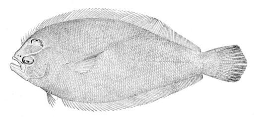 Keywords: Syacium papillosum.jpg Dusky flounder Syacium papillosum From plate 109 of Oceanic Ichthyology by G Brown Goode and Tarleton H Bean published 1896 PD-old From http //www photolib noaa gov/historic/nmfs/images/big/figb0686 jpg Oceanic Ichthyology Goode and Bean Syacium papillosum |