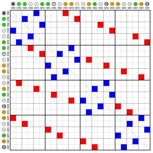 Symmetric group 4; Cayley graph 4,9 (adjacency matrix).svg (744x744)