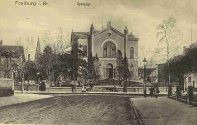 Keywords: Syna Freiburg Postcard.jpg Synagogue in Freiburg in Brisgau Germany destroyed in 1938 during the November Pogrom Old postcard postcard beg of XXth century author PD-old Alte Synagoge Freiburg im Breisgau