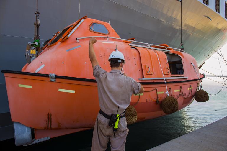 | Keywords: Syrian chemical agents destruction 140603-N-XB010-011.jpg en Michael Tuttle a third mate aboard the roll-on/roll-off and container ship MV Cape Ray gives instructions using hand signals during preventative maintenance checks of the ship's starboard lifeboat in Rota Spain June 3 2014 The U S government-owned MV Cape Ray was modified and deployed to the eastern Mediterranean Sea to dispose of Syrian chemical agents in accordance with terms Syria agreed to in late 2013 <br>Unit Defense Imagery Management Operations Center 2014-06-03 T-AKR 9679 https //www dvidshub net/image/1427862/syrian-chemical-agents-destruction 140603-N-XB010-011 2014-07-01 03 22 MV CAPE RAY T-AKR 9679 ES PD-USGov-Military-Navy MV Cape Ray T-AKR-9679 Images from DoD uploaded by Fæ |