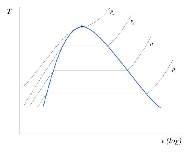 Keywords: T-v diagram for a liquid vapor.svg en Generic representation of a temperature-volume diagram for a fluid near its liquid/vapor phase transition The blue curve represents the saturation curve black lines are constant pressure isochoric curves 2013 own Olivier Cleynen other versions cc-zero SVG physics Uploaded with UploadWizard Temperature-volume diagrams |