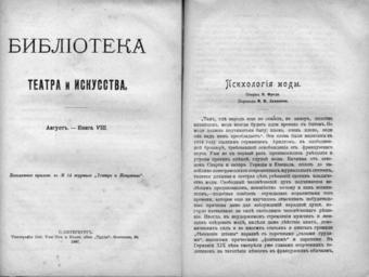 Keywords: TA907VIII.JPG титульный лист п иложения к жу налу Теат и искусство 8 1907 и п евая ст аница оче ка В Ф еда Психология моды в пе еводе В П Лачинова из этого п иложения моя коллекция 2008 копия Serge Lachinov об аботка для wiki см ниже PD-RusEmpire Vladimir Pavlovich Lachinov Катего ия Владими Павлович Лачинов