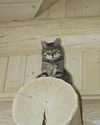 Keywords: tabbed cat portrait face watching animal cat feline fluffy fur lovely mammal pet tabby resting log