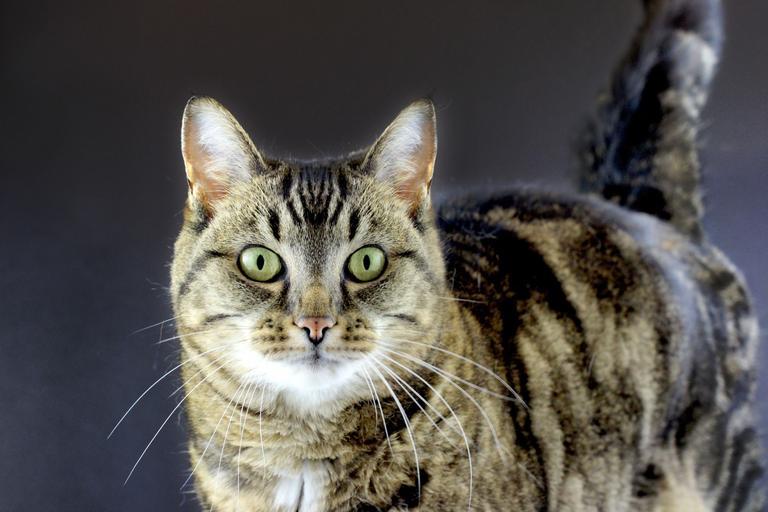 Keywords: tabby tabby cat cat eyes feline furry soft fur green eyes posing striped fur