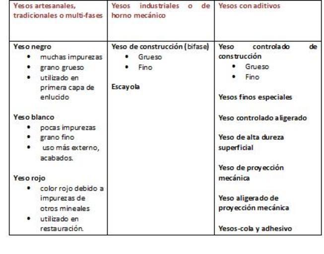 Keywords: Tabla tipos yesos construcción.jpg es tabla que ilustra los diferentes tipos de yesos en construcción own Esi us1 Tables information Plaster Materials science