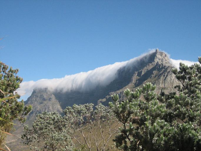 Keywords: Tablecloth 2009.jpg en Tablecloth effect at the Table mountain Cape Town South Africa de Tablecloth -Effekt am Tafelberg in Kapstadt Südafrika own Iwoelbern 2009-01-15 Table Mountain Leucadendron argenteum