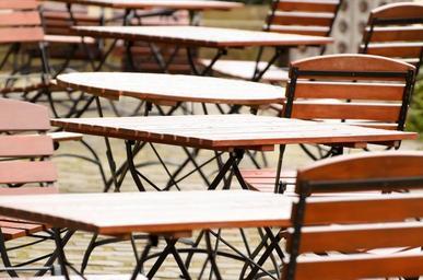 Keywords: tables chairs table restaurant garden furniture business food architecture background wooden empty closed sit job