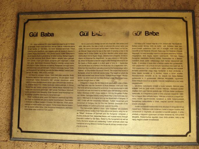 Keywords: TabletGülBaba.JPG Information about Gül Baba 2008-04-25 Own Memoskos Alevism Sufism Monuments and memorials in Budapest District II Gül Baba Street Turkish language signs English language signs