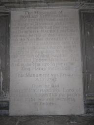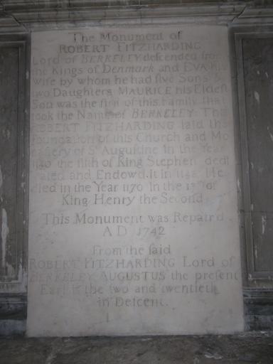 Keywords: TabletRobertFitzHardingStAugustinesBristol.jpg en Marble mural monumental tablet erected 1742 to Robert FitzHarding 1st feudal baron of Berkeley d 1170 in the Lady Chapel St Augustine's Abbey Bristol Cathedral The tablet appears to serve as an explication erroneously of the adjacent tomb-chest of a knight and lady in 14th c armour costume labelled on 19th c brass plaque affixed to the plinth as depicting Maurice de Berkeley 9th Baron Berkeley d 1368 and his mother The text of the marble tablet contains details now proved erroneous concerning his ancestry Text The monument of Robert FitzHarding Lord of Berkeley descended from the Kings of Denmark and Eva his wife by whom he had five sons two daughters Maurice his eldest son was the first of this family that took the name of Berkeley This Robert FitzHarding laid the foundation of this church and monastery of St Augustine in the year 1140 the fifth of King Stephen dedicated in the year 1170 in the 17th of King Henry the Second This monument was repaired AD 1742 From the said Robert FitzHarding Lord of Berkeley Augustus the present Earl is the two and twentieth in descent Own unknown stonemason 1742 Check categories 2012 January 15 en wikipedia Robert_Fitzharding 6 Noble families of the United Kingdom People of Bristol History of Bristol 1170 deaths History of Gloucestershire 1095 births |