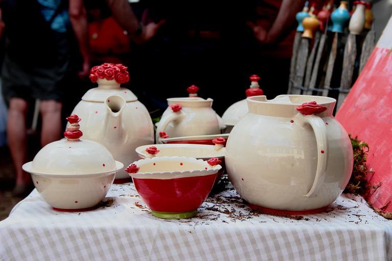 Keywords: tableware earthenware pot krug bowls ceramic red exhibition