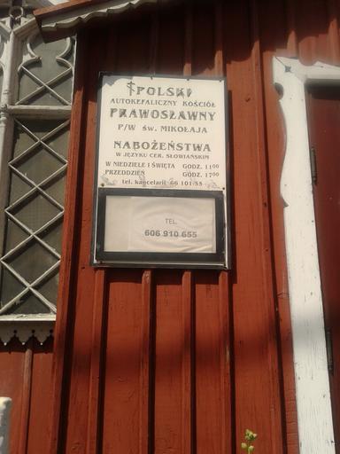 | Keywords: Tablica informacyjna na Polskim Autokefalicznym Kościele Prawosławnym - Parafia Św. Mikołaja w Toruniu.jpg pl Tablica informacyjna na Polskim Autokefalicznym Kościele Prawosławnym - Parafia Św Mikołaja w Toruniu ulica Podgórna 45 tekst tabliczki POLSKI AUTOKEFALICZNY KOŚCIÓŁ PRAWOSŁAWNY P/W PODE WEZWANIEM św MIKOŁAJA NABOŻEŃSWTWA W JĘZYKU CERKIEWNO-SŁOWIAŃSKIM W NIEDZELĘ I ŚWIĘTA GODZINA 11 PRZEDDZIEŃ GODZINA 17 TELEFON KANCELARII 66 101 55 TELEFON 606 910 655 2014-06-20 14 23 34 own Grzegorznadolski cc-zero Uploaded with UploadWizard Orthodox church in Toruń |