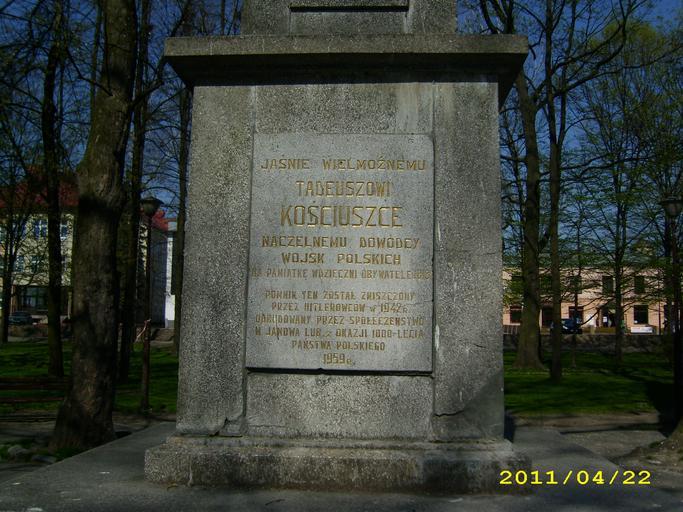 Keywords: Tablica na pomniku Tadeusza kościuszki w Janowie Lubelskim 1.JPG pl Tablica na pomniku Tadeusza Kościuszki w Janowie Lubelskim own Ziomalitto Cc-zero Tadeusz Kościuszko Monument in Janów Lubelski