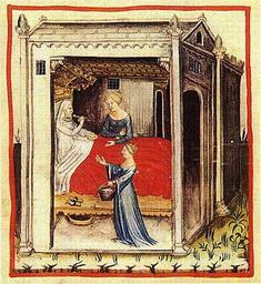 Keywords: Tacuin orge29.jpg en Savich or Barley Soup Savich id est Pultes Ordei Nature Cold and dry in the second degree temperate when it is toasted Usefulness Promotes the flow of bile Dangers It generates flatulence Neutralization of the Dangers With sugar Effects Encourages positive humors It is good for hot temperaments for the young in Summer and in the warm regions From the Tacuinum of Vienna fr Soupe à l'orge Savich id est Pultes Ordei Nature froid et sec au second degré tempérée quand l ™orge est grillé Usage Favorise la circulation de la bile Dangers Il génère des flatulences Neutralisation des dangers avec du sucre Effets Favorise les humeurs positives Il est bon pour les tempéraments chauds pour les jeunes en été et dans les régions chaudes book scan unknown master century 14 Tacuinum sanitatis Cod Vindob ser nov 2644 Beds in medieval miniatures Cereal products Barley soup PD-Art |