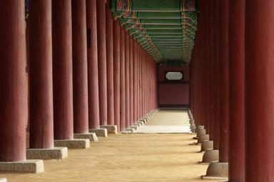 Keywords: heritage Korea Seoul Tadashi Kyng-bokkung corridor around Kunjongjon architecture winter temple ancient scene royal asian shrine josen february grounds