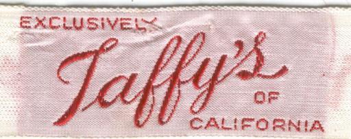 Keywords: Taffylabel.jpg Taffy's label ca 1957 source private collection 2011-2-25 Own schmausschmaus public domain cc-zero Original upload log page en wikipedia Taffylabel jpg Upload date User Bytes Dimensions Comment 2011-02-26 00 01 37 Schmausschmaus 134725 461 × 183 <small><nowiki> Taffy's label ca 1957 source private collection 2011-2-25 Own schmausschmaus public domain </nowiki></small> Clothes labels Anne T Hill |