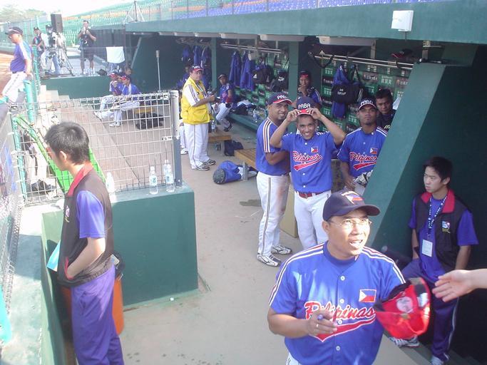Keywords: Taichung Intercontinental Baseball Stadium02.jpg A look inside the first base dugout with players and coaches from the Philippines in the inagural game of Taichung Intercontinental Baseball Stadium in a 2006 Intercontinental Cup game played on September 9 2006 Photo taken on September 9 2006 2006-11-09 own assumed Ludahai Baseball dugouts National baseball teams Intercontinental Cup baseball |