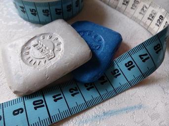 Keywords: tailor's chalk chalk tailoring sew nähutensilien handarbeiten meter craft hobby take measurements measure mark blue centimeters millimeter accuracy make gifts yourself