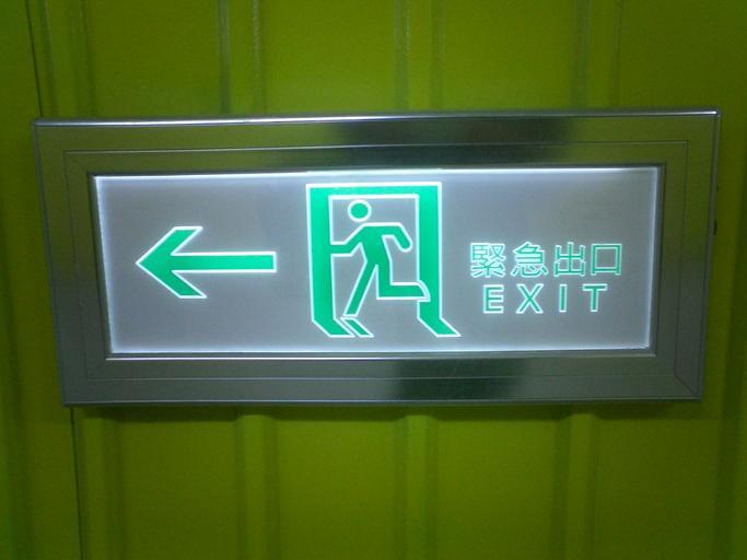 | Keywords: Taiwan exit sign white backgrounded.jpg en A exit sign with white background used in Taiwan ja 台湾で使われている白背景の 常口のサイン Own Oakw 2009-11-11 Luminous emergency exit signs Emergency exit pictograms luminous Signs in Taiwan LED lamps Green on white exit signs |