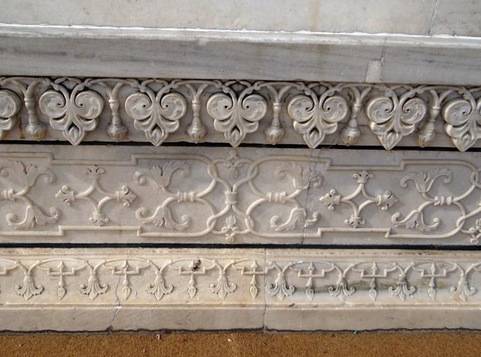 Keywords: taj mahal base relief work floral relief white marble agra india
