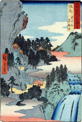 Keywords: Tajima Province, Iwai Valley, Kannon Cave (5765897764).jpg en <b>Accession Number </b> 1957 324 <b>Display Artist </b> Utagawa Hiroshige <b>Display Title </b> Tajima Province Iwai Valley Kannon Cave <b>Translation s </b> Tajima Iwaidani Iwayakannon El Templo de Kannon en Una Cueva en El Valle Iwai Lugares Famosos en Las Sesenta y Tantas Provincias <b>Series Title </b> Famous Views of the Sixty-odd Provinces <b>Suite Name </b> Rokujuyoshu meisho zue <b>Creation Date </b> 1853 <b>Medium </b> Woodblock <b>Height </b> 13 3/8 in <b>Width </b> 9 in <b>Display Dimensions </b> 13 3/8 in x 9 in 33 97 cm x 22 86 cm <b>Publisher </b> Koshimuraya Heisuke <b>Credit Line </b> Bequest of Mrs Cora Timken Burnett <b>Label Copy </b> November 2004Asian Tastes InstallationThis landscape print of shrines and temples show Ando Hiroshige's masterful skill in capturing the varied moods of memorable places at different times Hiroshige developed his own distinctive style by combining various techniques from traditional Japanese schools such as Kano and Shijo as well as Chinese landscape styles and even Western techniques of painting The four prints shown here are from a 1853 series of the Famous Places in the Sixty-odd Provinces that Hiroshige produced during the later years of his successful career These prints present the common people's experience of the Japanese landscape <b>Collection </b> http //www sdmart org/art/our-collection/asian-art The San Diego Museum of Art 2007-05-10 10 08 49 https //www flickr com/photos/thesandiegomuseumofartcollection/5765897764/ Flickr en thesandiegomuseumofartcollection PD-old-100 Art of Japan in the San Diego Museum of Art