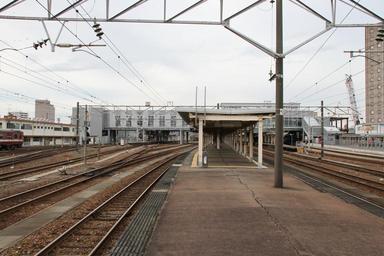 Keywords: Takaoka Station Platform.jpg View from the Toyama east end of platforms 3/4 at Takaoka Station on the Hokuriku Main Line 高岡駅構内 own 2012-12-02 TTTNIS Cc-zero Takaoka Station Toyama Taken with Canon EOS 7D Taken with Canon EF-S 18-200mm F3 5-5 6 IS |