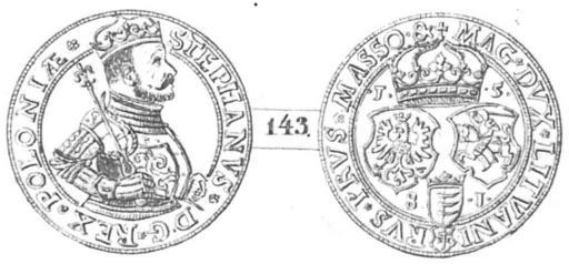 Keywords: Talar Batory 1-5 -8-1 Orzeł+Pogoń+Wilcze kły+Przegonia.jpg pl Talar_Batory__1-5_-8-1_Orzeł+Pogoń+Wilcze_kły+Przegonia Monety dawnej Polski jakoteż Ignacy Zagórski 1848 PD-old Historical coins of Poland
