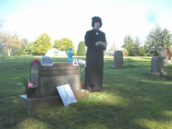 MAKE A MEME View Large Image ...Ann Hope portraying Dr. Bethenia Owens-Adair at the 2013 Talking Tombstones X, Don't Take Them for Granite event held at the Ocean View Cemetery in Warrenton, Oregon October 27, 2013. ShawnAnn Hope portraying Dr. Bethenia Owens-Adair at the ...