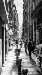 Keywords: calle street barcelona blancoynegros blackandwhite sony sal18200 a57 people shopping road monochrome sidewalk colonnade architecture outdoor black and white Calle Tallers Calle Tallers
