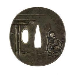 Keywords: Tamagawa Yoshiharu - Tsuba with an Immortal with His Tiger - Walters 51181.jpg On the right side of this tsuba is a Chinese immortal standing with a tiger It is either Bukan Ch Fung Gan who would ride his tiger around his monastery to shock others or the Taoist sage Koreijin Ch Gu Lingren who is accompanied by his white tiger Tigers are said to turn white when they reach the age of five hundred years The tiger demonstrates the power of sage's wisdom because he was able to tame such a strong animal On the left is a bamboo grove middle Other date century 19 late Edo-Meiji silver cm 6 9 6 6 0 42 accession number 51 181 2352 Henry Walters Baltimore date and mode of acquisition unknown Walters Art Museum Henry Walters Acquired by Henry Walters Signature Yoshiharu saku; Translation Made by Yoshiharu place of origin Edo present-day Tokyo Japan Walters Art Museum license Tsuba in the Walters Art Museum Tamagawa Yoshiharu Media contributed by the Walters Art Museum needs category review |