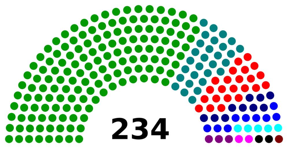 Keywords: Tamil Nadu Legislative Assembly, 2011.svg en Breakdown of political party representation in the Tamil Nadu Legislative Assembly after the 2011 election 009900 AIADMK 150 seats 008080 DMDK 29 seats FF0000 DMK 23 seats 000080 CPI M 10 seats 0000FF CPI 9 seats 00FFFF INC 5 seats 800080 PMK 3 seats FF00FF MNMK 2 seats 000000 PT 2 seats 800000 AIFB 1 seat 2016-03-04 own using Slashme's http //tools wmflabs org/parliamentdiagram/parliamentinputform html Parliament diagram tool Nirinsanity other versions cc-zero Election apportionment diagrams of India Elections in 2011 ImageNote 1 181 129 8 8 360 185 2 AIADMK 150 seats DMDK 29 seats DMK 23 seats CPI M 10 seats CPI 9 seats INC 5 seats PMK 3 seats MNMK 2 seats PT 2 seats AIFB 1 seat ImageNoteEnd 1 |