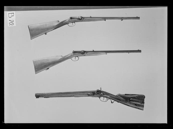 Keywords: Tändnålsgevär, Tyskland, 1800-talets anda hälft, tillverkningsnr 15491 - Livrustkammaren - 69346.tif Åttsidig brunerad räfflad pipa fyra djupa breda räfflor Vid pipbasen förtjockad till en kula med plana sidor på översidan ett runt hål I kulan löper en laddcylinder blankt handtag på h sida stämplat på insidan 91 På pipans h sida därframför stämplat 15491 samt graverat med tysk stil Stahl på pipans v sida stämplat fraktur-M fyra ggr på h nedre sidofasen graverat en tändnål På pipans undersida en invändigt gängad cylinder för pipans fästning vid framstocken framtill en rembygel <br/>Riktmedel Kulissikte med centrerbar skärm skruv framför skärmen stolpkorn av stål båda inlaxade <br/><br/>Bakom kulan fortsätter pipan i en åttsidig låda för slutstycket påh sida stämplat Cal 0 345 Gran Pulv nederdelen av texten dold Slutstycke med spiralfjäder nål l 16 mm På lådans undersida en avtryckare med fjäder avtryckarens och fjäderns fästskruv stämplade 91 Avtryckarbleck av gråanlöpt stål konturerad framände <br/><br/>Halvstock av trä valnöt engelsk kolv med kindstöd och nätskuren kolvhals Framstock med näsa På kolvens undersida en remknapp av blånerat stål d 20 7 mm På framstockens undersida en spetsoval skruvbricka för pipans fästskruv skruv och bricka stämplade 91 Varbygel av gråanlöpt stål med kluven bakre stolpe och lång spetsig bakre arm på armens insida stämplat 91 Samtliga fästskruvar stämplade 91 I piprännan skrivet med blyerts 15491 original caption ca other date - 1850 1900 steel e127 - eldvapen - pipa lås och stockbeslag material stål - wood e3 - eldvapen - stock material trä size mm 914 size mm 193 size mm 490 pipa g 2220 LRK place of origin DE original filename LN_B05728_008608 47089 inventory number LRK 12212 69346 CC0 Tändnålsgevär Tyskland 1800-talets anda hälft tillverkningsnr 15491 - Livrustkammaren - 69346-negative tif Early firearms Percussion muskets images from Livrustkammaren Media contributed by LSH dim-with multiple size templates Media contributed by LSH 2013-10 |