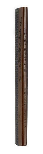 | Keywords: Tani Motosada - Kozuka with Mt Fuji and the 53 Stations of the Tôkaidô - Walters 51644 - Mark A.jpg A depiction of Mt Fuji fills the front of the kozuka The peak is often covered in snow represented here in silver On the reverse is a list in gold inlay of the fifty-three stations of the Tôkaidô road between Edo now Tokyo and Kyoto Below each station name is the distance to the next station On the bottom half of the reverse side is a landscape scene This may be Amanohashidate in northern Kyoto prefecture The view of the sand bar covered with pines at Amanohashidate is considered one of the three great views in Japan 1841 late Edo shakudo copper silver gold cm 9 9 accession number 51 644 4656 Henry Walters Baltimore date and mode of acquistion unknown Walters Art Museum Henry Walters Acquired by Henry Walters Date iji Tenpô jyû ni nen kanoto ushi chûtô ; Translation 1841 year of the ox 11th month; Signature Unyô Jugakuken Tani Motosada horu kore; Translation Unyô Jugakuken Tani Motosada carved this place of origin Shimane Japan Walters Art Museum license Kozuka in the Walters Art Museum Media contributed by the Walters Art Museum needs category review Tani Motosada |