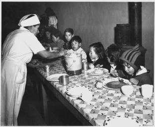Keywords: Taos County, New Mexico. The hot lunch, school at Penasco. Children pay about 1 cent daily for thi . . . - NARA - 521841.tif Scope and content Full caption reads as follows Taos County New Mexico The hot lunch school at Penasco Children pay about 1 cent daily for this hot meal made up primarily of food from the Surplus Commodities Program and prepared by WPA-paid cooks General notes 521841 Local identifier 83-G-41605 Department of Agriculture Bureau of Agricultural Economics Division of Economic Information ca 1922 - ca 1953 NARA-Author Rusinow Irving Photographer 5307166 <br /> Still Picture Records Section Special Media Archives Services Division NWCS-S National Archives at College Park 8601 Adelphi Road College Park MD 20740-6001 12/1941 Record group Record Group 83 Records of the Bureau of Agricultural Economics 1876 - 1959 Record group ARC 412 Photographic Prints Documenting Programs and Activities of the Bureau of Agricultural Economics and Predecessor Agencies compiled ca 1922 - ca 1947 documenting the period ca 1911 - ca 1947 Series ARC 521048 File unit File unit ARC Variant control numbers NAIL Control Number NWDNS-83-G-41605 yes Other versions <gallery> File Taos_County _New_Mexico _The_hot_lunch _school_at_Penasco _Children_pay_about_1_cent_daily_for_thi_ _ _ _-_NARA_-_521841 tif tif File Taos_County _New_Mexico _The_hot_lunch _school_at_Penasco _Children_pay_about_1_cent_daily_for_thi_ _ _ _-_NARA_-_521841 jpg jpg </gallery> NARA-cooperation PD-USGov Irving Rusinow School lunch NARA TIF images with categorized JPGs |