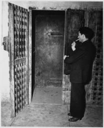 Keywords: Taos County, New Mexico. Sheriff Montoya displays, with some pride, the tiny cell in which are lock . . . - NARA - 521886.jpg Scope and content Full caption reads as follows Taos County New Mexico Sheriff Montoya displays with some pride the tiny cell in which are locked drunks who won't behave or special important tough prisoners with whom he wishes to take no chances The box in which his hand holds the inserted key is an enormous lock which holds the bolt of the cell door Cell is the size of a large closet General notes 521886 Local identifier 83-G-41659 Department of Agriculture Bureau of Agricultural Economics Division of Economic Information ca 1922 - ca 1953 NARA-Author Rusinow Irving Photographer 5307166 <br /> Still Picture Records Section Special Media Archives Services Division NWCS-S National Archives at College Park 8601 Adelphi Road College Park MD 20740-6001 12/1941 Record group Record Group 83 Records of the Bureau of Agricultural Economics 1876 - 1959 Record group ARC 412 Photographic Prints Documenting Programs and Activities of the Bureau of Agricultural Economics and Predecessor Agencies compiled ca 1922 - ca 1947 documenting the period ca 1911 - ca 1947 Series ARC 521048 File unit File unit ARC Variant control numbers NAIL Control Number NWDNS-83-G-41659 Other versions <gallery> File Taos_County _New_Mexico _Sheriff_Montoya_displays _with_some_pride _the_tiny_cell_in_which_are_lock_ _ _ _-_NARA_-_521886 tif tif File Taos_County _New_Mexico _Sheriff_Montoya_displays _with_some_pride _the_tiny_cell_in_which_are_lock_ _ _ _-_NARA_-_521886 jpg jpg </gallery> NARA-cooperation PD-USGov Irving Rusinow 1941 in Taos County |