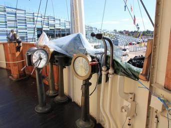 Keywords: Tarmo bridge 2.JPG en Open bridge of icebreaker Tarmo in maritime centre Vellamo showing engine order telegraphs and voice tubes fi Konekäskynvälittimiä ja puheputkia jäänmurtaja Tarmon avokomentosillalla merikeskus Vellamossa own MKFI 2011-07-31 Tarmo ship 1907 Bridges nautical Chadburns July 2011 in Finland Taken with Canon EOS 60D Taken with Canon EF-S 15-85mm F3 5-5 6 IS USM Speaking tubes Files by User MKFI |