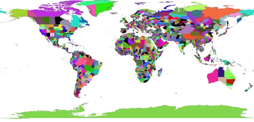 Keywords: TasacoraTest-World98.svg Same set of problems as File World98+ svg NOTE This file is HUGE It cannot open in inkscape with 2GB of memory or probably with 4GB either however gimp or a similar program should be able to generate a thumbnail without keeping the whole image in core In other words you will most likely be unable to open this on a 32-bit computer It is only intended for use by other wiki map geeks to generate smaller SVG maps of countries and regions Also note that whenever possible it is better to use one of the continental maps that came from the same source as they are more usable won't eat all your system memory and more precise 16 digits instead of 12 Image africa98 svg Image asia98 svg Image europe98 svg Image south_america98 svg Image oceania98 svg Image north_america98 svg 1998 World map with first level administrative units world98 shp from the US CDC http //www cdc gov/epiinfo/documents/shapes doc 2007-10-20 Translated to SVG by User Brianski TODO Find the right projection for and generate an antarctica98 svg Some submaps that don't follow continental boundaries might be handy e g carribean98 svg middle_east98 svg mediterranean98 svg se_asia_and_australia98 svg etc Fix blips in USA Utah PA Michigan etc west Antarctica change background color so these blips are more obvious and thus easier to fix Also group properly IE There shouldn't be >50 seperate USA groups for each state/territory instead they should be nested together in a common USA group Make copies of this map with country borders shown in darker lines The territory of Nunavut was formed in 1999 giving Canada three territories in the north - not the 2 displayed here Generation Notes <pre> perl xml2svg pl -P12 --proj cylindrical_equidistant 0 0 793353340291235 -x8000 world98 </pre> PD-USGov Tasacora |