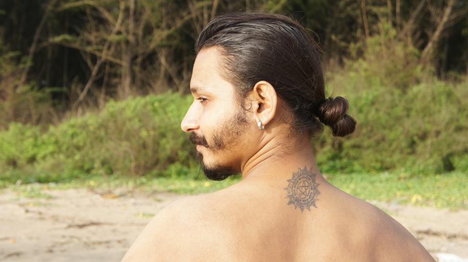 Keywords: tattoo beach pose naked long hair sunlight body jungle face back model exposure sun ancient architecture tourism travel forest old