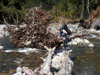 Keywords: Tauherenikau River 62.jpg Driftwood bridging the W Tauherenikau River towards Block XVI Track at true right <br> Sometimes fallen trees offer a welcome possibility to cross a river with dry boots 2016-02-10 own Sarang 41 1 9 3 S 175 18 37 E Tauherenikau River 614 Bridges in New Zealand River crossings in New Zealand |