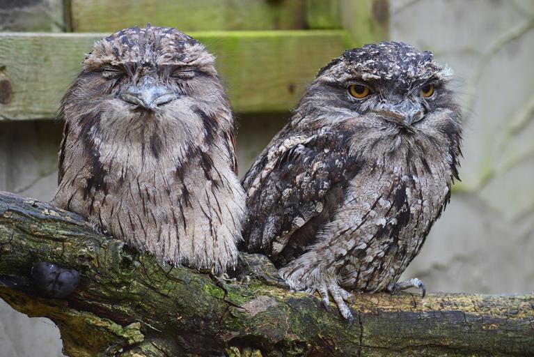 Keywords: tawny frogmouth owl owl australia bird pair grey feathers wild predator