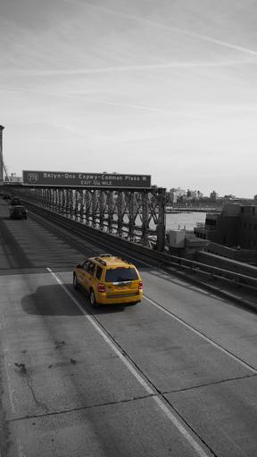 Keywords: taxi bridge road black and white city sky car hudson new york united states